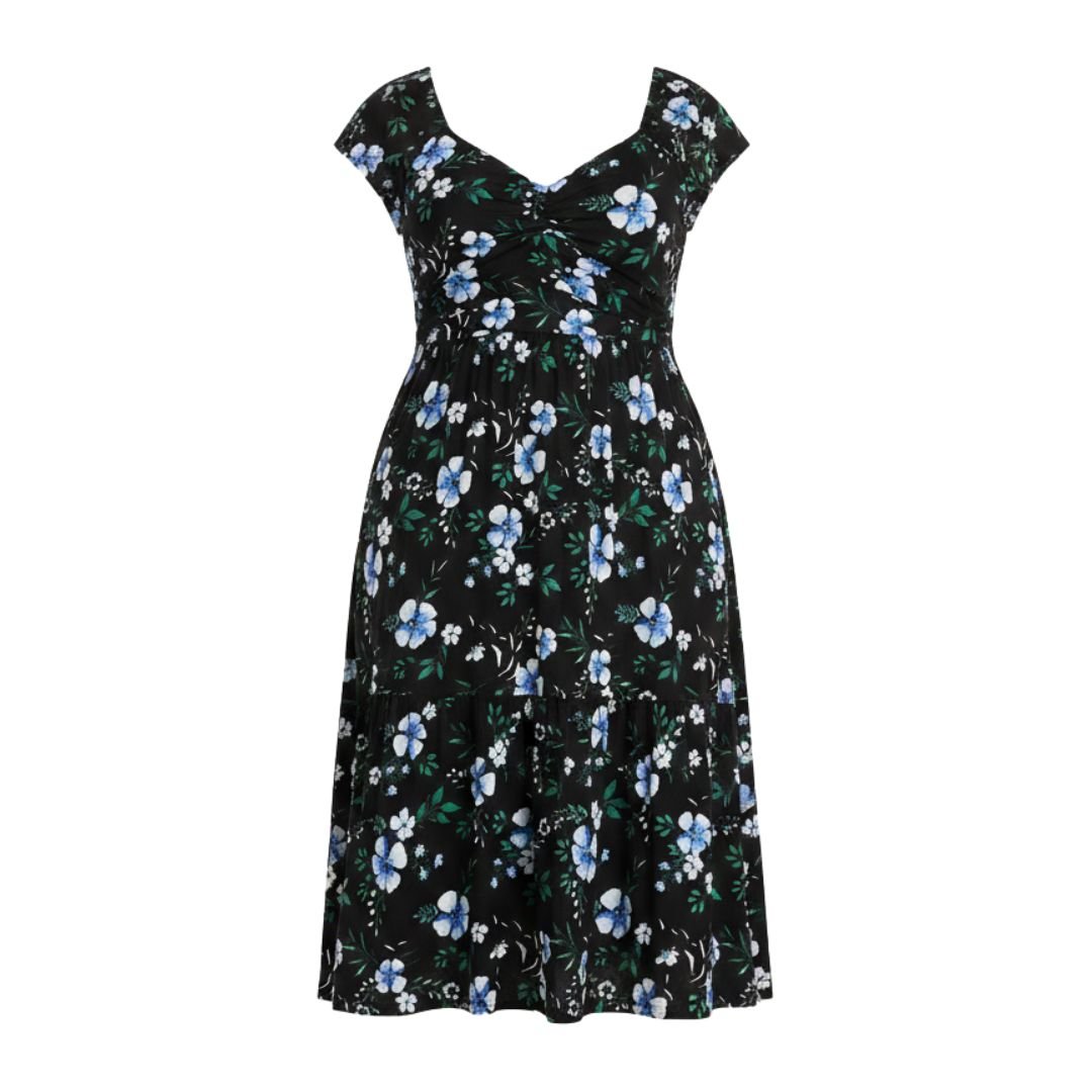Why You’ll Love It Enjoy a flattering tiered design that enhances natural curves. Stay cool and comfortable with breathable short sleeves. Add a feminine touch to your look with a timeless floral print. Style it easily with sandals or wedges for versatile wear.